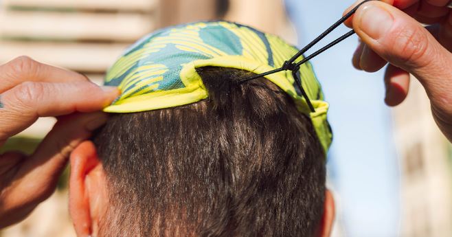 Tecido de malha ultraleve, antibacteriano e extremamente respirável. Não retém umidade caso você jogue um pouco mais de água sobre a cabeça para se refrescar. O tecido atoalhado antibacteriano de secagem rápida no interior do boné é muito macio e oferece conforto ideal sem pressionar. O topo da cabeça permanece coberto por um tecido opaco e leve para proteção extra sem comprometer a ventilação. A faixa de malha elástica se ajusta perfeitamente a qualquer formato e não sai quando você aumenta a velocidade.